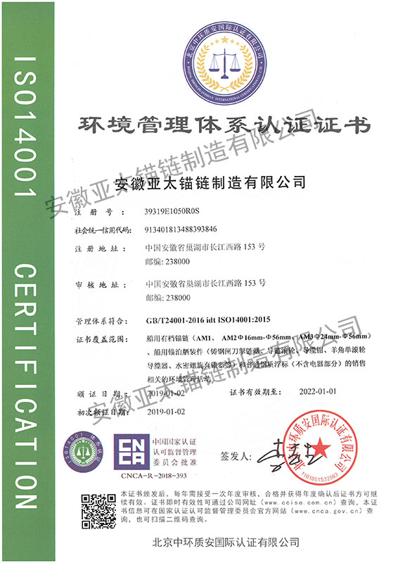 安徽亞太錨鏈制造有限公司是國家高新技術(shù)企業(yè),也是國家GB/T 549-2017《電焊錨鏈》標(biāo)準(zhǔn)的起草和制定單位之一。公司旗下設(shè)有錨鏈分廠、浮標(biāo)分廠、舾裝件分廠等多個(gè)分廠。公司專業(yè)從事φ12.5mm-φ107mm二、三級(jí)船用錨鏈、浮標(biāo)錨鏈、錨鏈附件,錨、船舶曬裝產(chǎn)品、航標(biāo)、系船浮、船型標(biāo)、多種規(guī)格海洋監(jiān)測浮標(biāo)及航標(biāo)燈等產(chǎn)品的生產(chǎn)、安裝和服務(wù)。目前公司的產(chǎn)品銷往全國各地船廠、碼頭、航標(biāo)處、航道局、海洋局,并已走上國際市場,如東南亞、中東、歐美等國家。